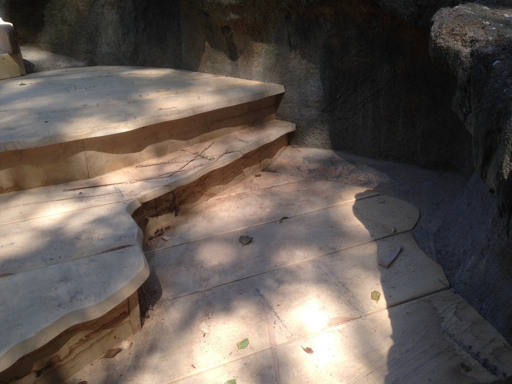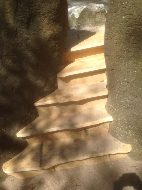 En lidt anderledes ’sjov’ opgave, hvor vores to tømrere, Ole og Frederik, havde fri mulighed for at være kreative i processen. Trappen og gulvet, som ses på billederne, er lavet i 25 mm egetræsplanker. Før Guldfeldt gik i gang med projektet, var gulvet én stor ujævn betonoverflade, og det var derfor vigtigt at få gulvet jævnet ud, så det blev meget mere børnevenligt og til stor glæde for både store som små.