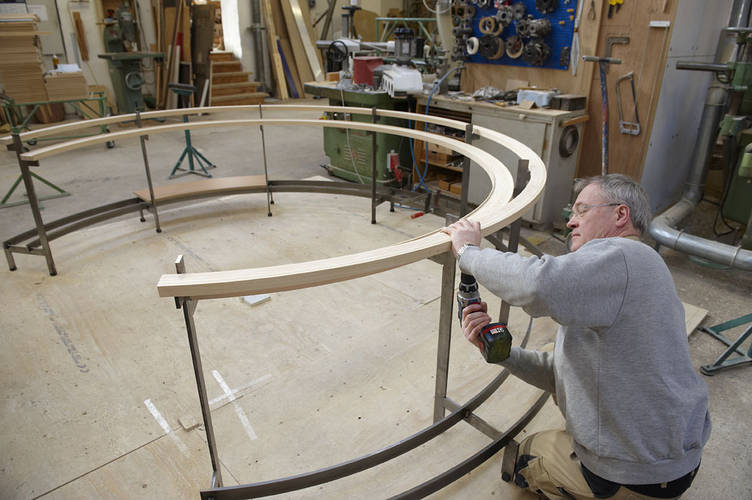 Udførelse af nyt alterbord og knæfald til kirken. Hovedparten af arbejdet blev udført på Guldfeldts værksted, hvorefter opstilling, samling/montage og den sidste finish blev foretaget i selve kirken.